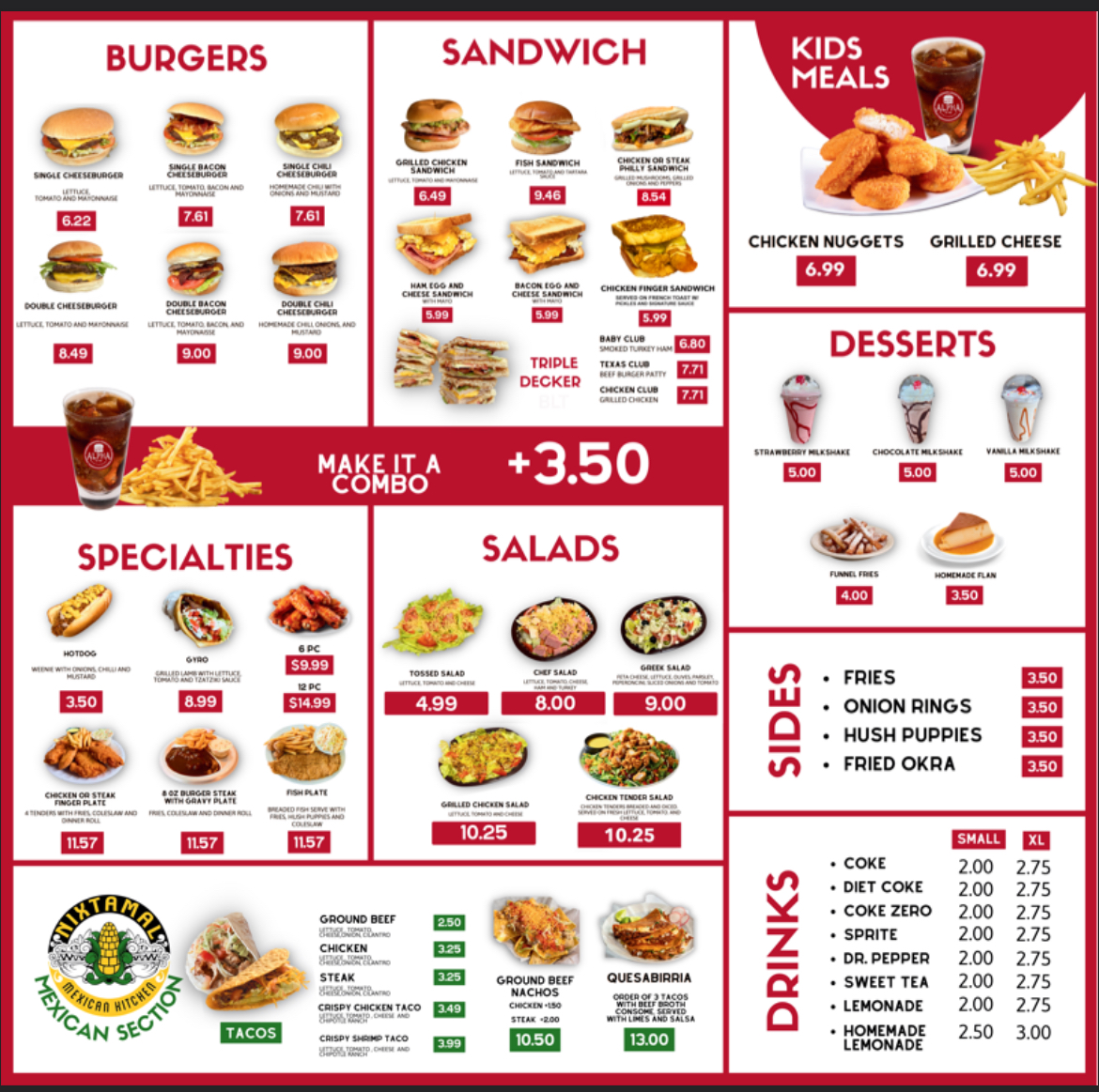 Welcome to Alpha Restaurant, a culinary gem situated in Taylors, SC. Known for its vibrant Mexican menu, Alpha Restaurant tantalizes your taste buds with an array of delicious options. Start your meal with mouthwatering tacos, featuring choices like ground beef or crispy shrimp, all bursting with fresh ingredients like lettuce, tomato, and cilantro.